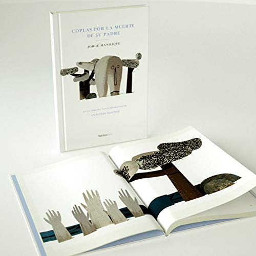 «Las Coplas hablan al corazón y lo hacen sobre la muerte, desde luego, que es precisamente el momento más pleno y decisivo, el compendio y clímax de toda vida: la mía, la tuya, la suya, la de todos y cada uno de nosotros, de vosotros y de ellos y ellas. Y las Coplas contienen un recorrido moral pero también histórico, plástico y hasta costumbrista por el humano devenir. »Cuando un pintor e ilustrador del nivel, originalidad y creatividad de Antonio Santos acomete el reto de ilustrar las Coplas por la muerte de su padre, comprendo que el manantial de Manrique sigue siendo feraz e inagotable. Por eso, como un soplo de aire fresco, se acoge este nuevo enfoque y tratamiento que Antonio Santos ha sabido dar al tema: color, hierática frescura en el deliberado límite de lo naif, hondura sin afectación, emoción no sobreactuada. Del prólogo de José Manuel Ortega.