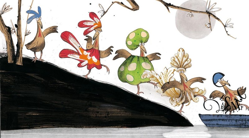 Un huevo se resquebraja. Del huevo sale un pollo. Un pollo desnudo, sin una sola pluma, que se acatarra con cualquier corriente de aire. Un día se encontró con cuatro pollos de un plumaje espléndido. Quiso ser su amigo, pero ellos desdeñaron al pollito desnudo. El pollito se enfangó en un barrizal y una ráfaga de viento lo cubrió de hojas y papeles y otras cosas. Su vestido a la última moda fascinó a los cuatro pollos, que ahora sí lo quisieron como amigo. Pero un ataque de tos desveló que las apariencias a veces son muy engañosas y que la amistad va más allá de lo que hay en el exterior.