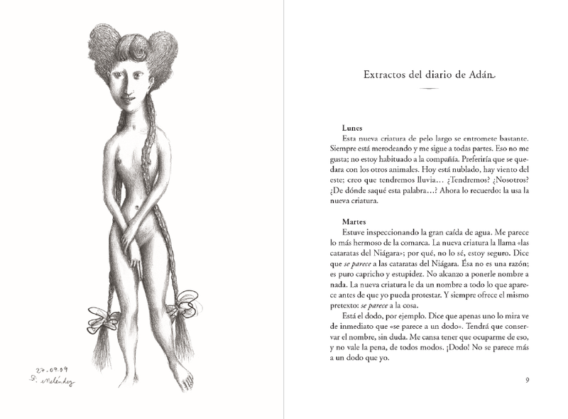 El mítico ilustrador Francisco Meléndez cumple sus bodas de acero con el silencio, y las interrumpe momentáneamente para esclarecer lo sucedido en el Edén hace cientos de años. Una muestra de su talento intacto y libérrimo, que Mark Twain celebra desde quién sabe dónde.