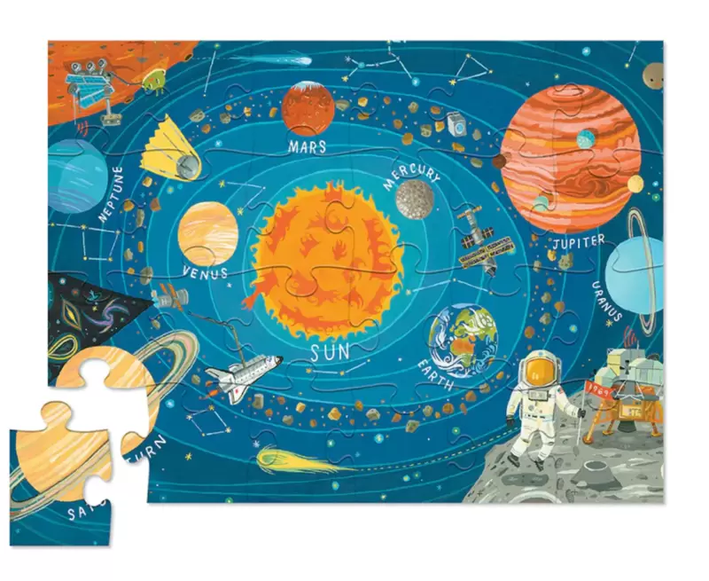 ¡¡¡Despegar!!! ¡Despega hacia los confines de la galaxia con nuestro rompecabezas de suelo de 24 piezas del Sistema Solar! Con sus cautivadoras ilustraciones y llamativos colores, este rompecabezas es el último viaje a través del cosmos para los exploradores espaciales en ciernes.