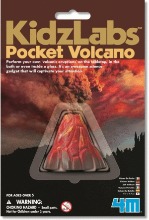 The kit includes a pocket volcano, detailed instructions with fun facts and 1 sachet of baking soda